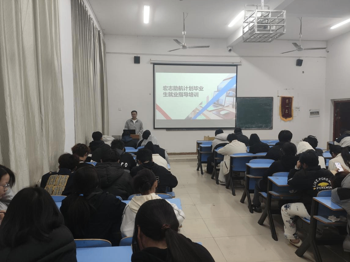近日,由教育部组织实施、面向全国高校毕业生的“宏志助航”就业能力培训项目正在各地各高校如火如荼地展开。该计划作为促进高校毕业生更加充分更高质量就业的重要举措,江西科技职业学院积极相应号召,为促进我校毕业高质量就业,2025年11月19日,在机电建筑楼4106教室开展了“宏志助航计划“建筑专业毕业生就业指导培训会。